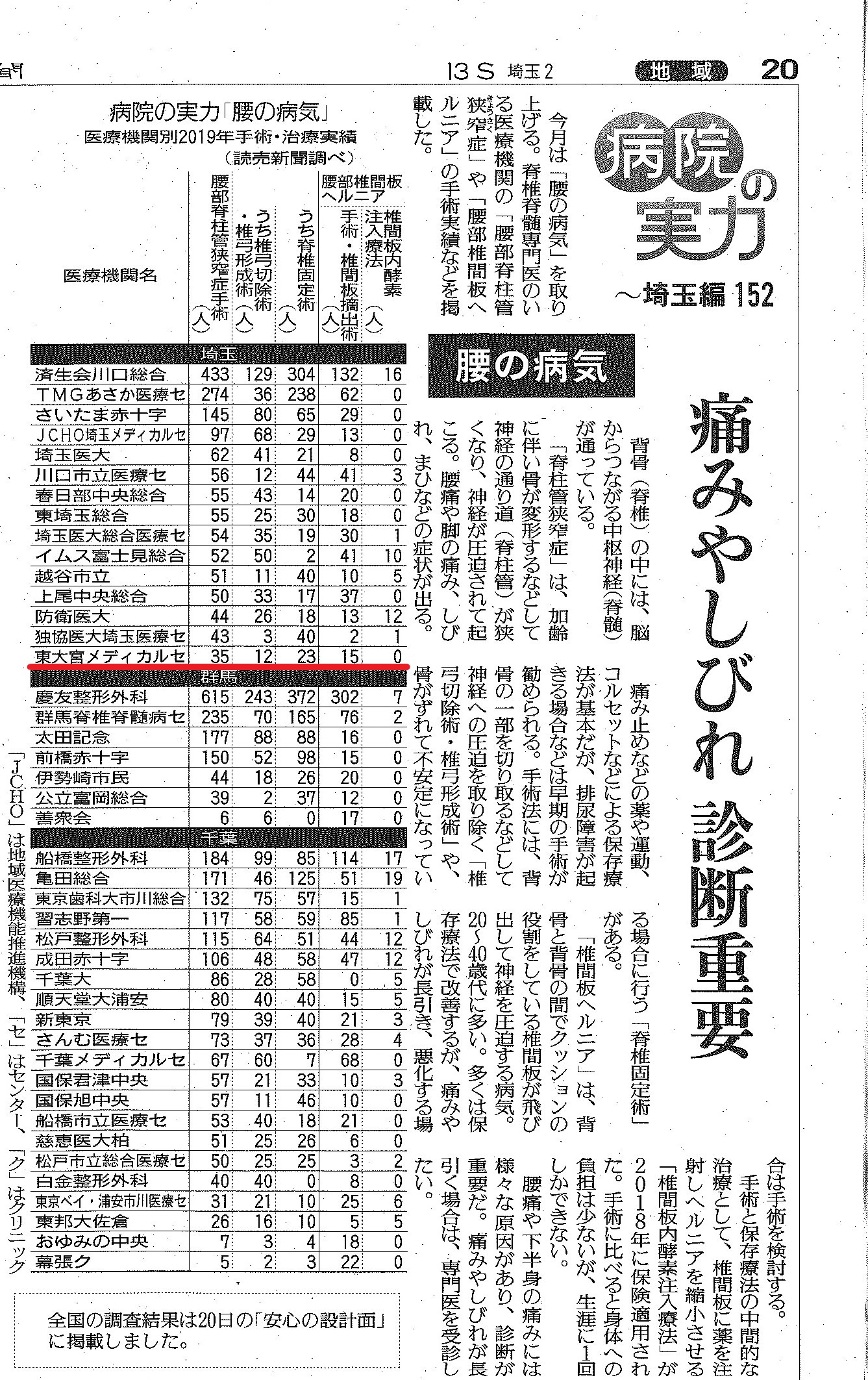 当院が読売新聞「病院の実力」の【腰の病気】の記事に掲載されました。