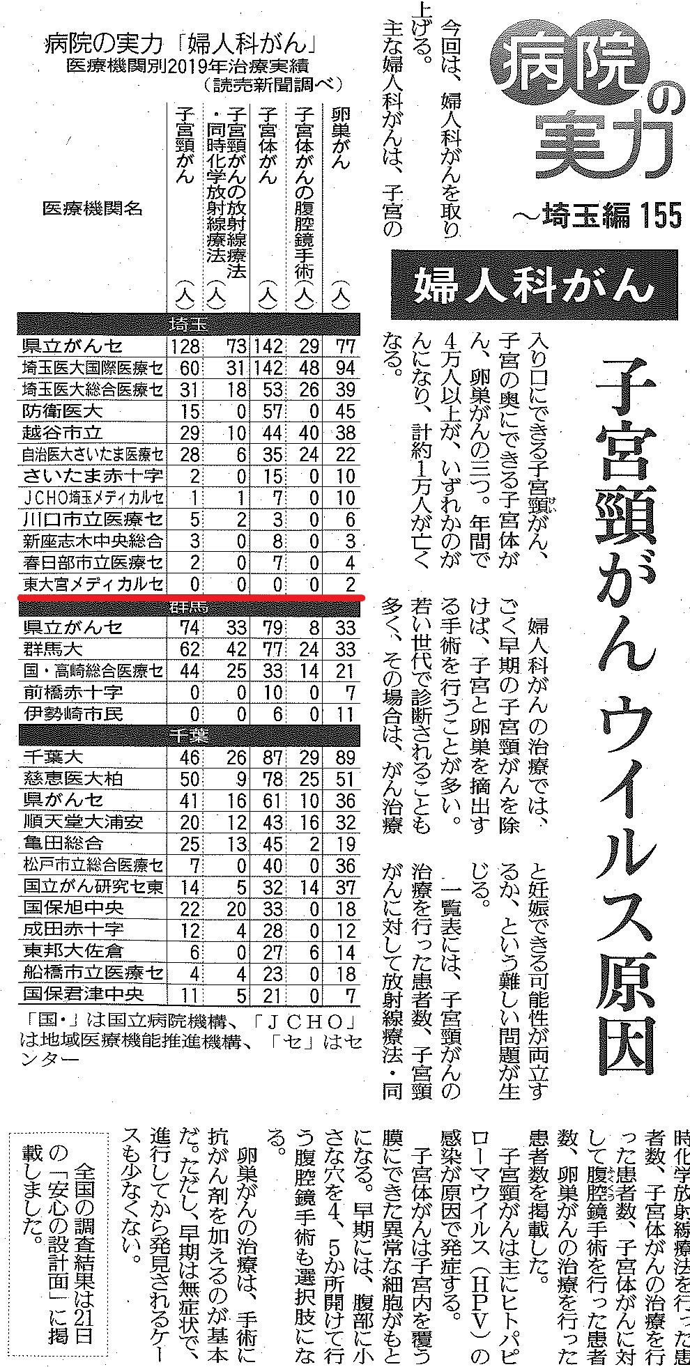 当院が読売新聞「病院の実力」の【婦人科がん】の記事に掲載されました。