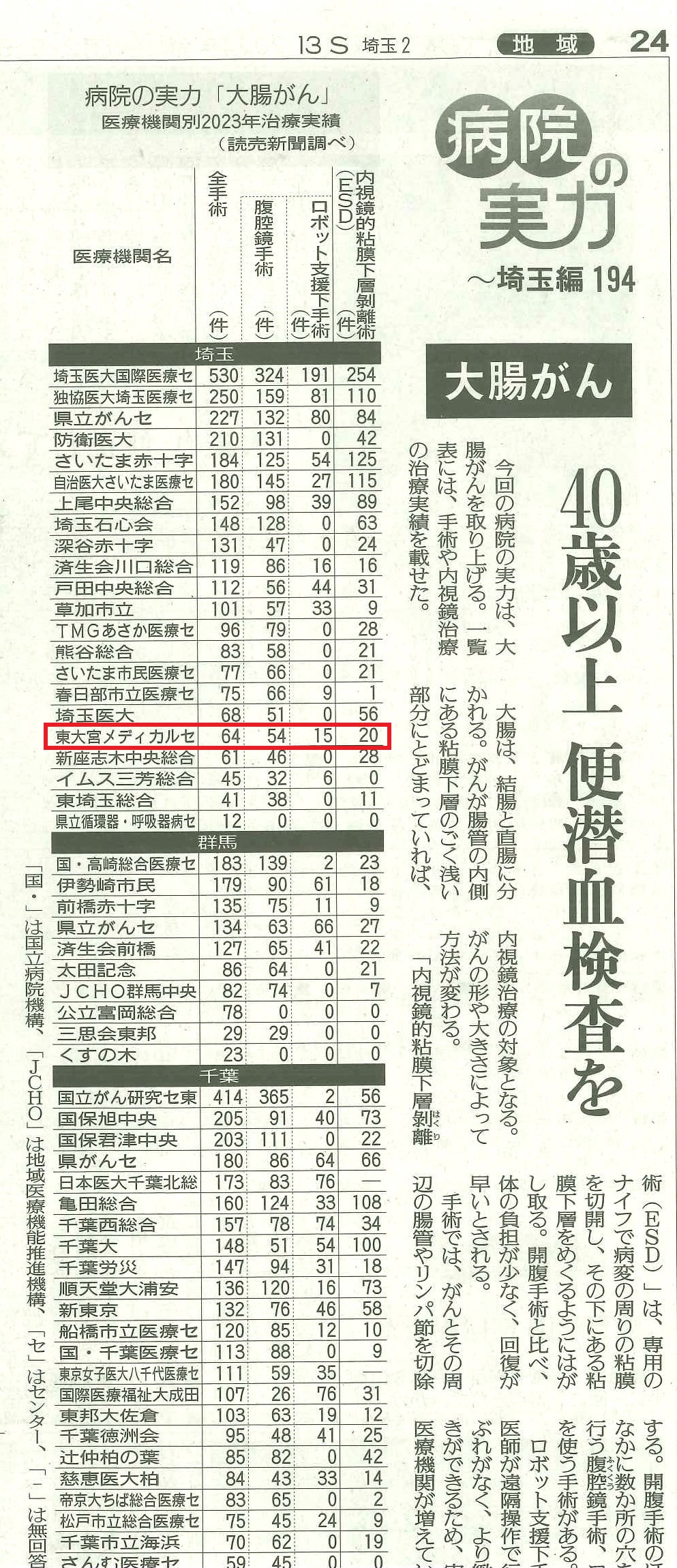 当院が読売新聞「病院の実力」の【大腸がん】の記事に掲載されました。