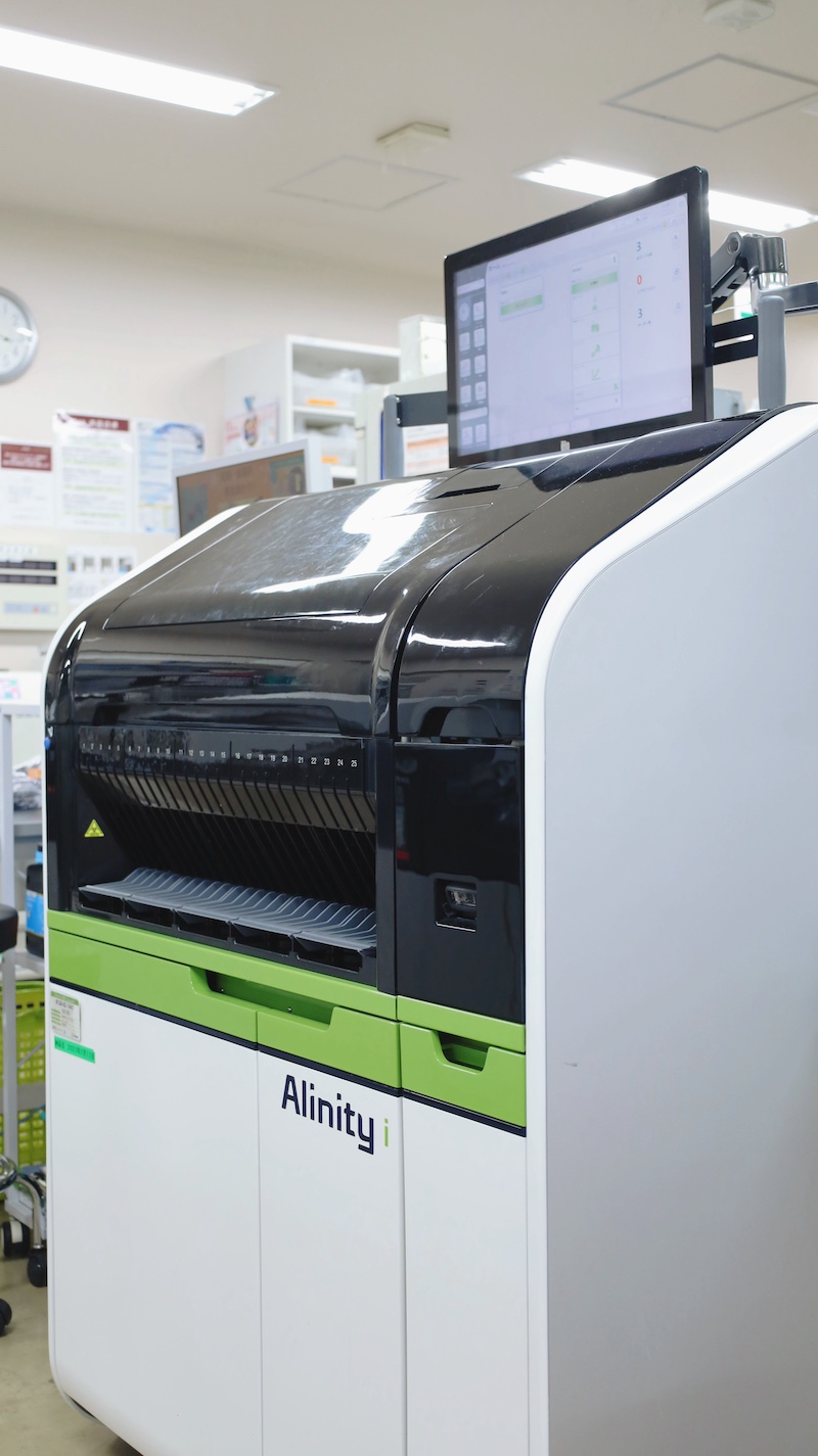輸血とは、出血や病気、あるいは治療により減少した血液成分を補う重要な治療法です。輸血を必要とされている患者さんに適合する血液を提供するために、当院では自動輸血検査機器「オーソ社 VISION」を導入し、血液型検査(ABO・Rh式)、不規則抗体検査、交差適合試験を行っています。2022年4月に、一般社団法人日本輸血・細胞治療学会主催の輸血機能評価認定制度(I&A制度)認証施設を取得しました。適正に管理・使用し、安全な輸血用製剤を迅速に提供することで、患者さんが安心安全な輸血治療を受けて頂けるよう日々尽力し取り組んで参ります。
