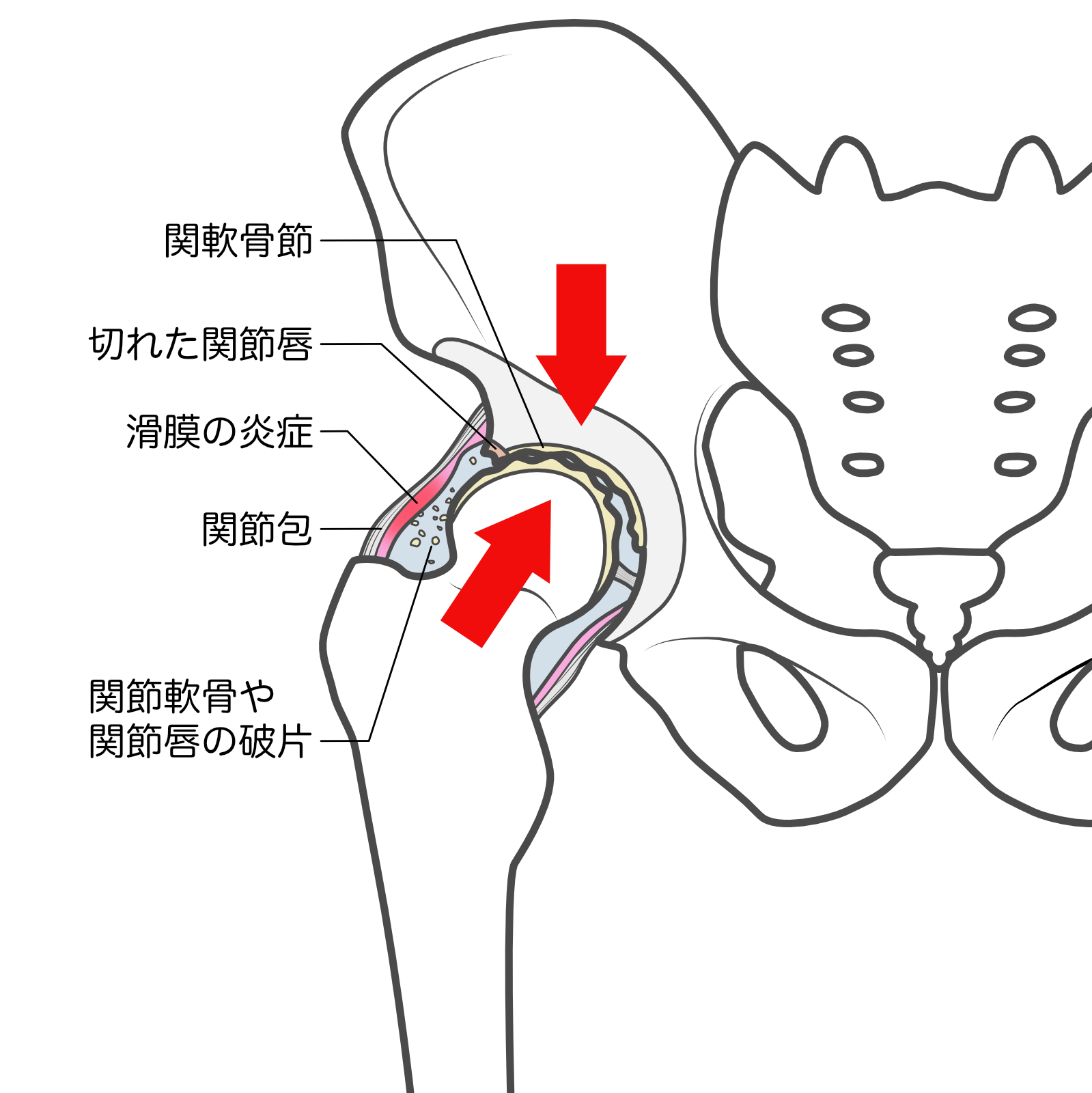 変形性股関節症とは、股関節の周りを覆っている軟骨が徐々にすり減ることで関節が変形し、痛みを引き起こす疾患です。患者数は国内で400万人前後と推測されていて、50代以降の女性に多くみられます。