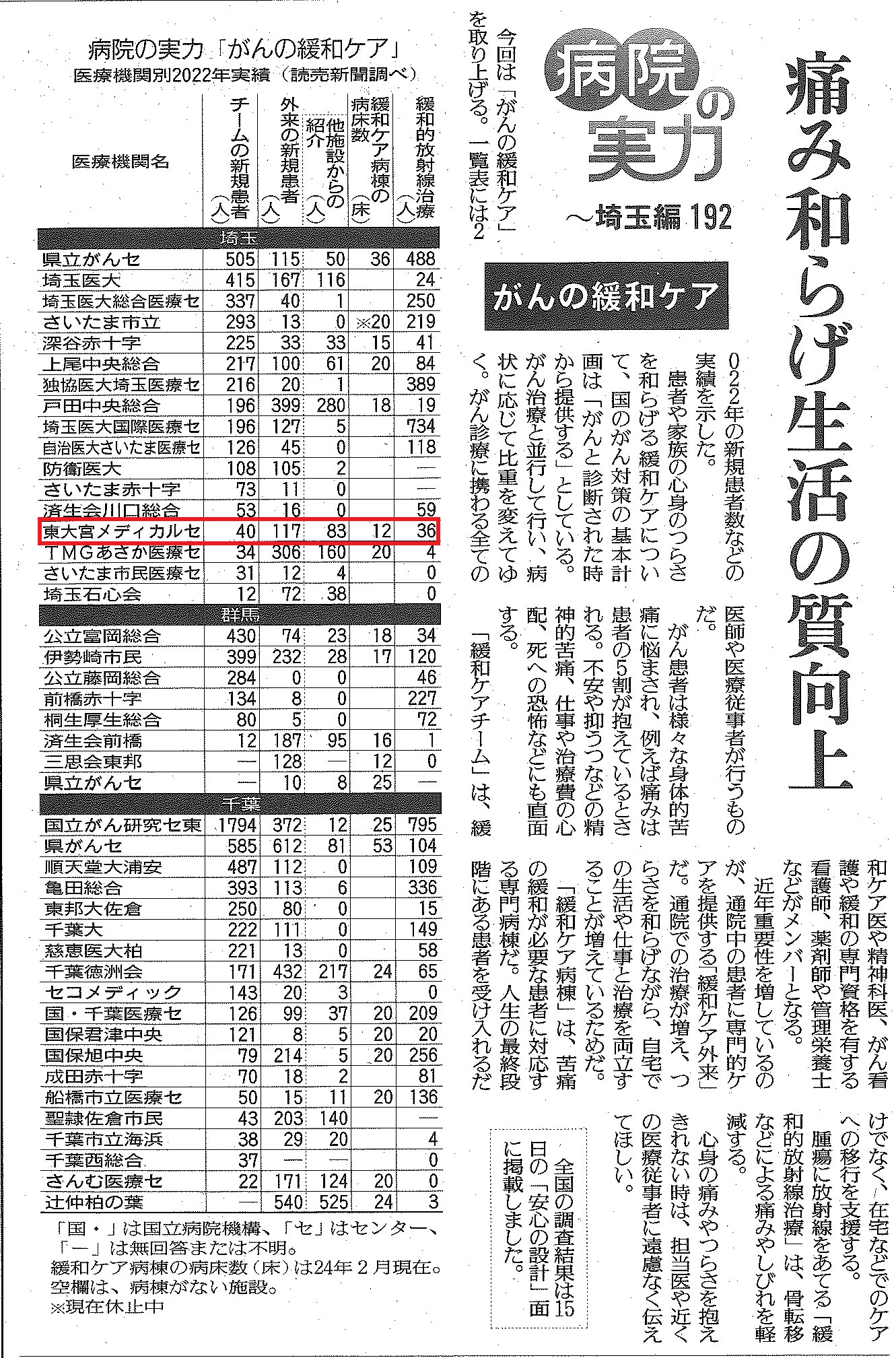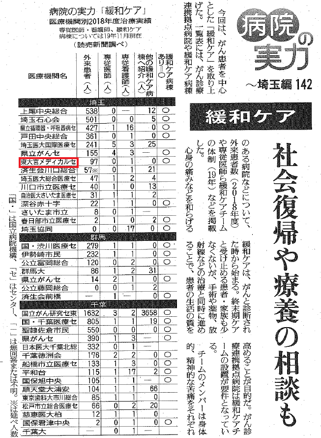 当院が読売新聞「病院の実力」の【がんの緩和ケア】の記事に掲載されました。