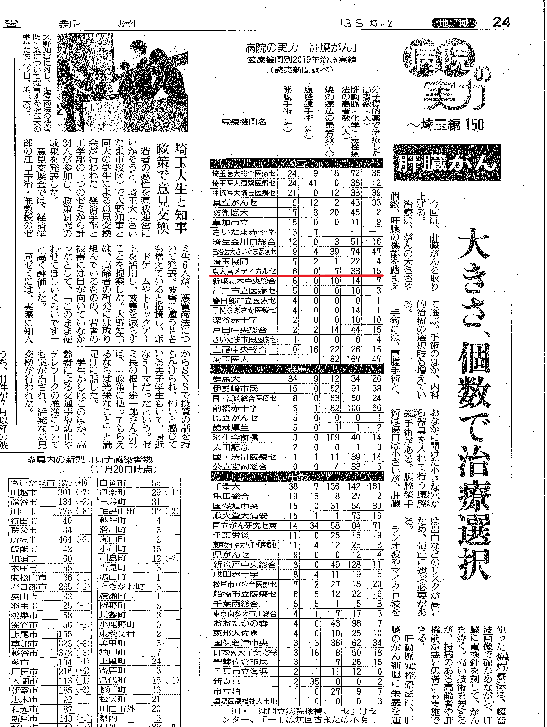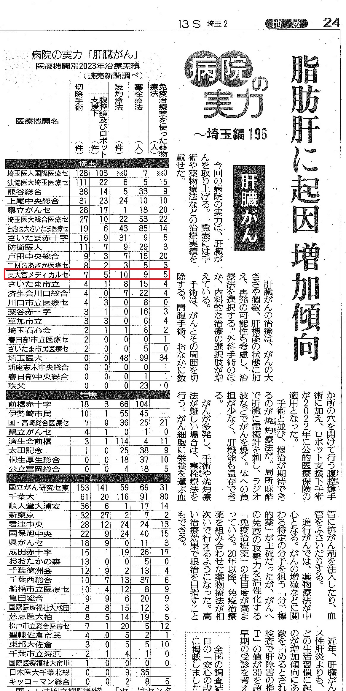 当院が読売新聞「病院の実力」の【肝臓がん治療実績】の記事に掲載されました。