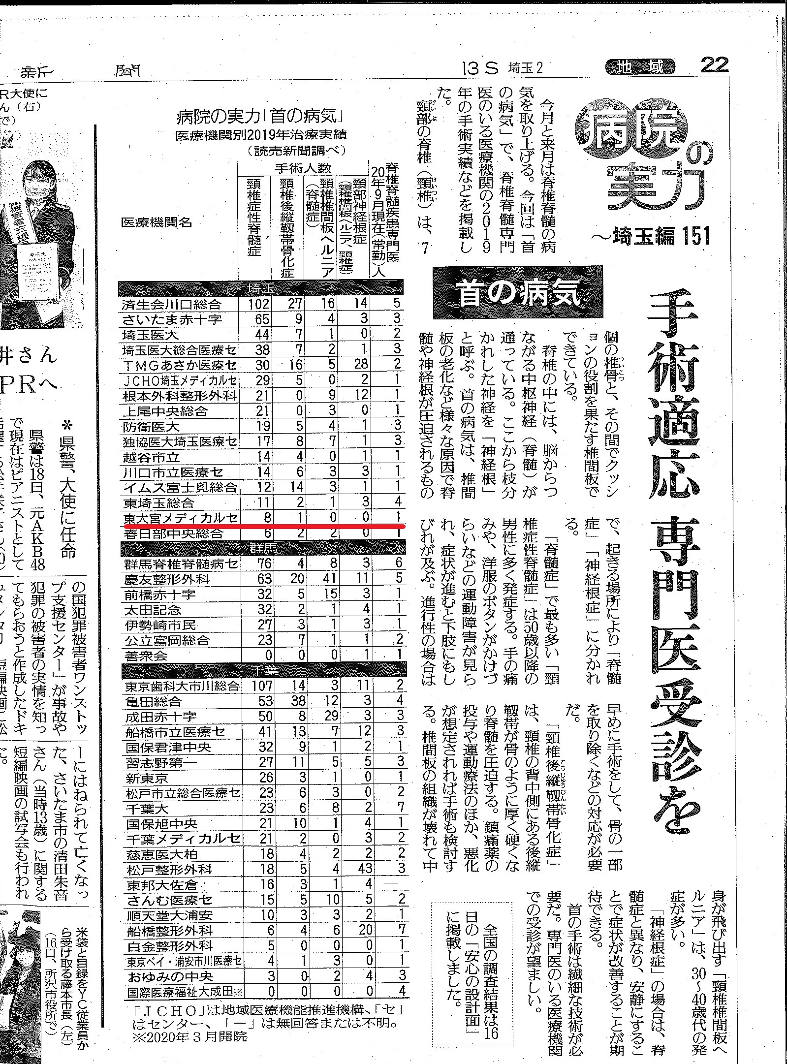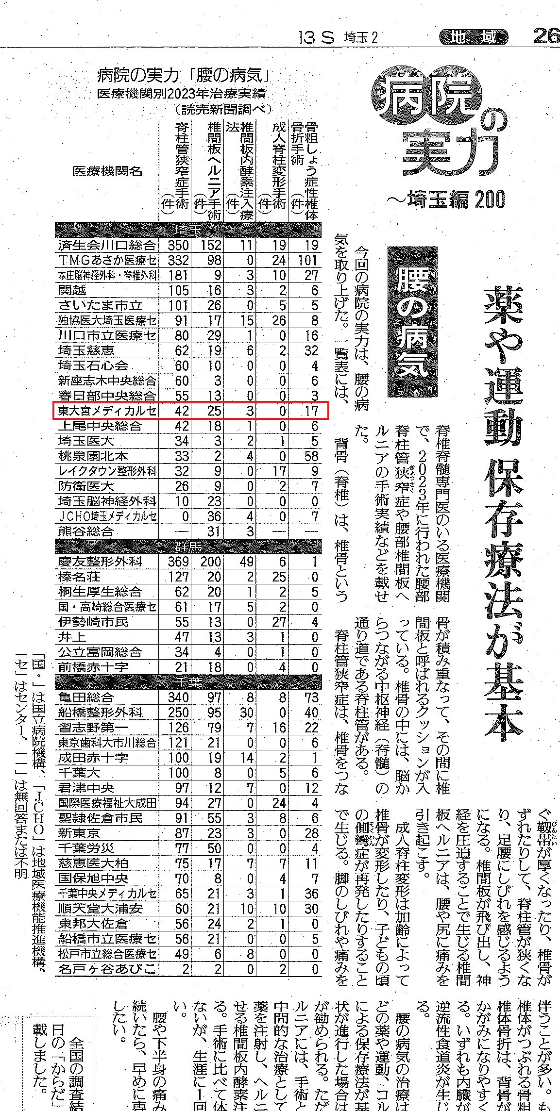 当院が読売新聞「病院の実力」の【腰の病気】の記事に掲載されました。
