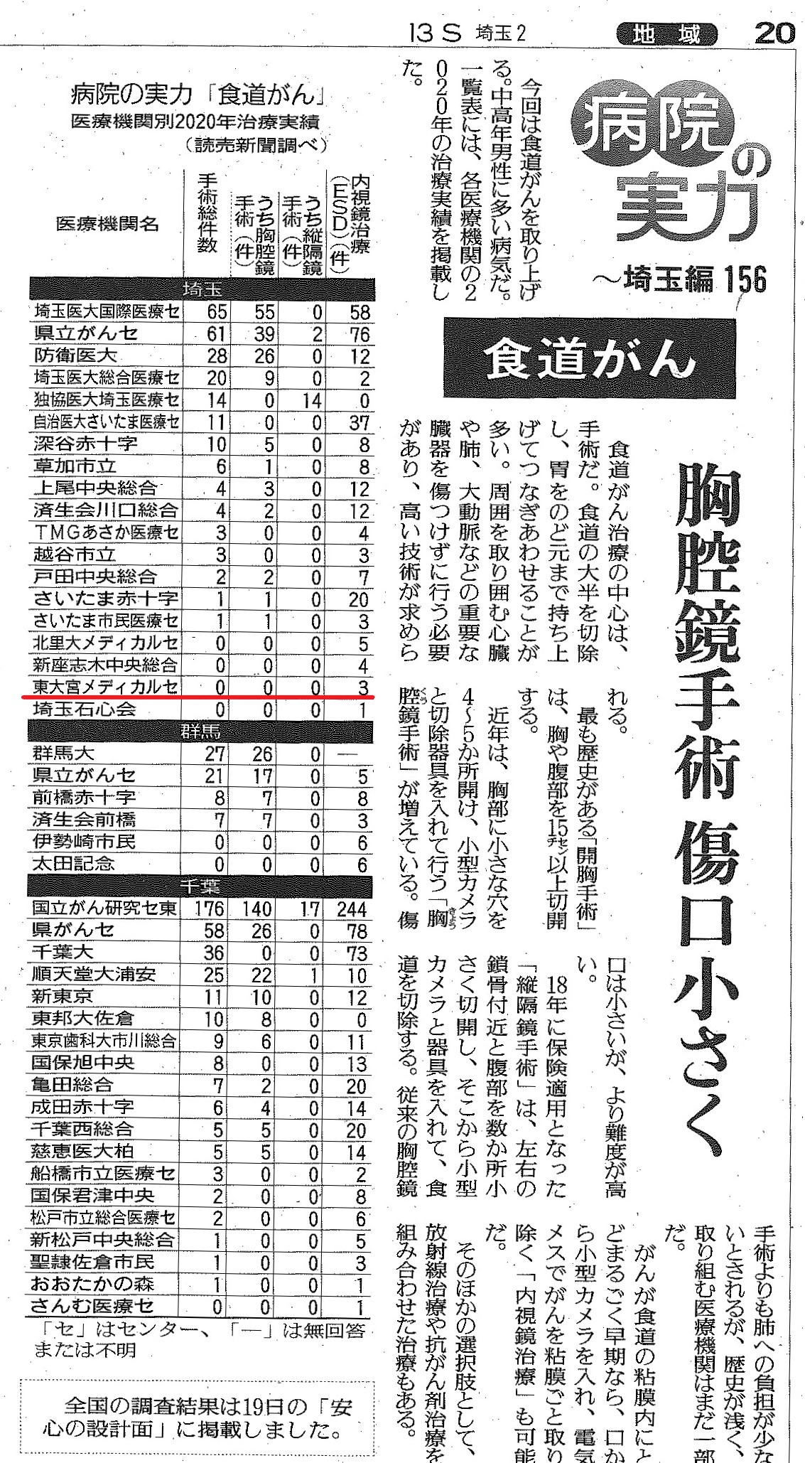当院が読売新聞「病院の実力」の【食道がん】の記事に掲載されました。