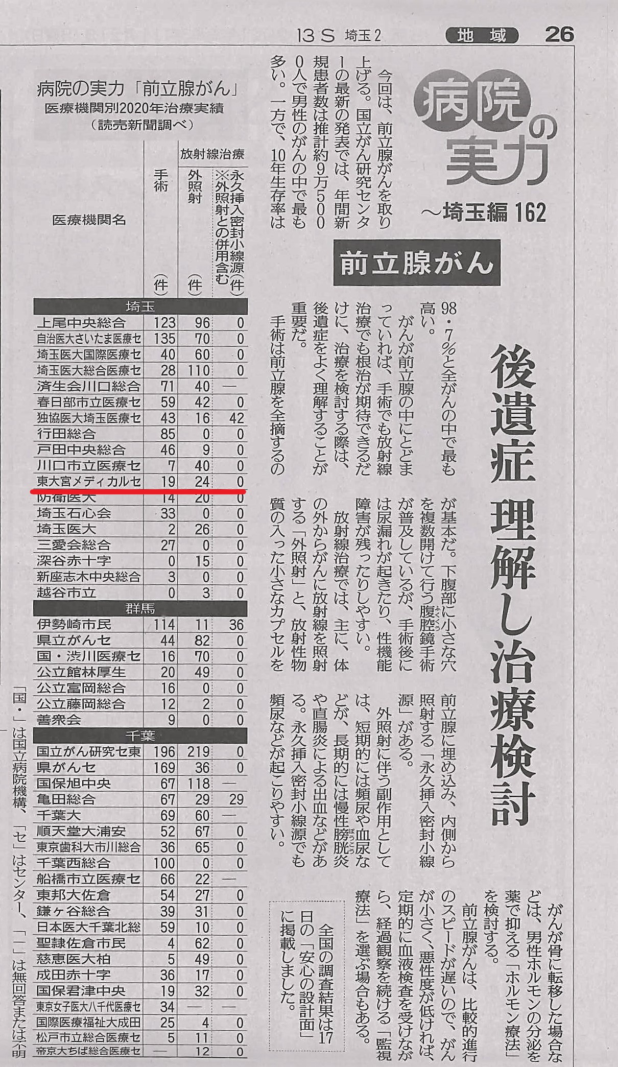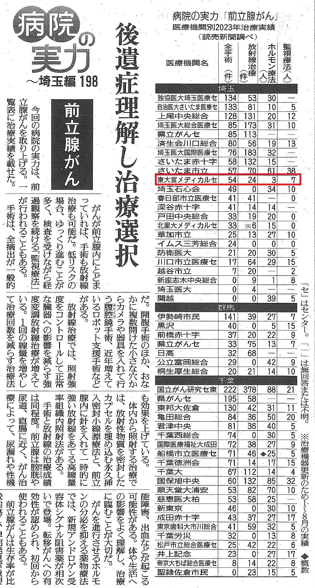 当院が読売新聞「病院の実力」の【前立腺がん】の記事に掲載されました。