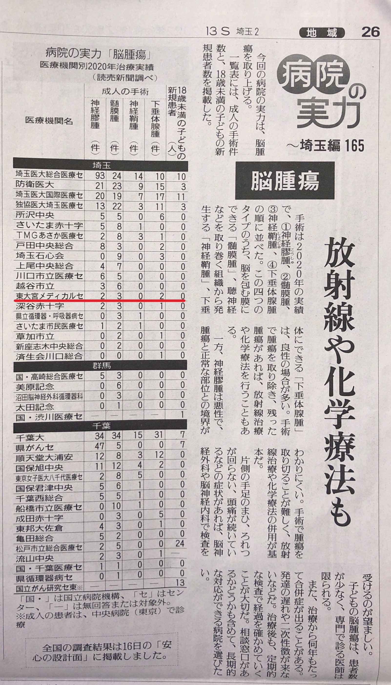 当院が読売新聞「病院の実力」の【脳腫瘍】の記事に掲載されました。