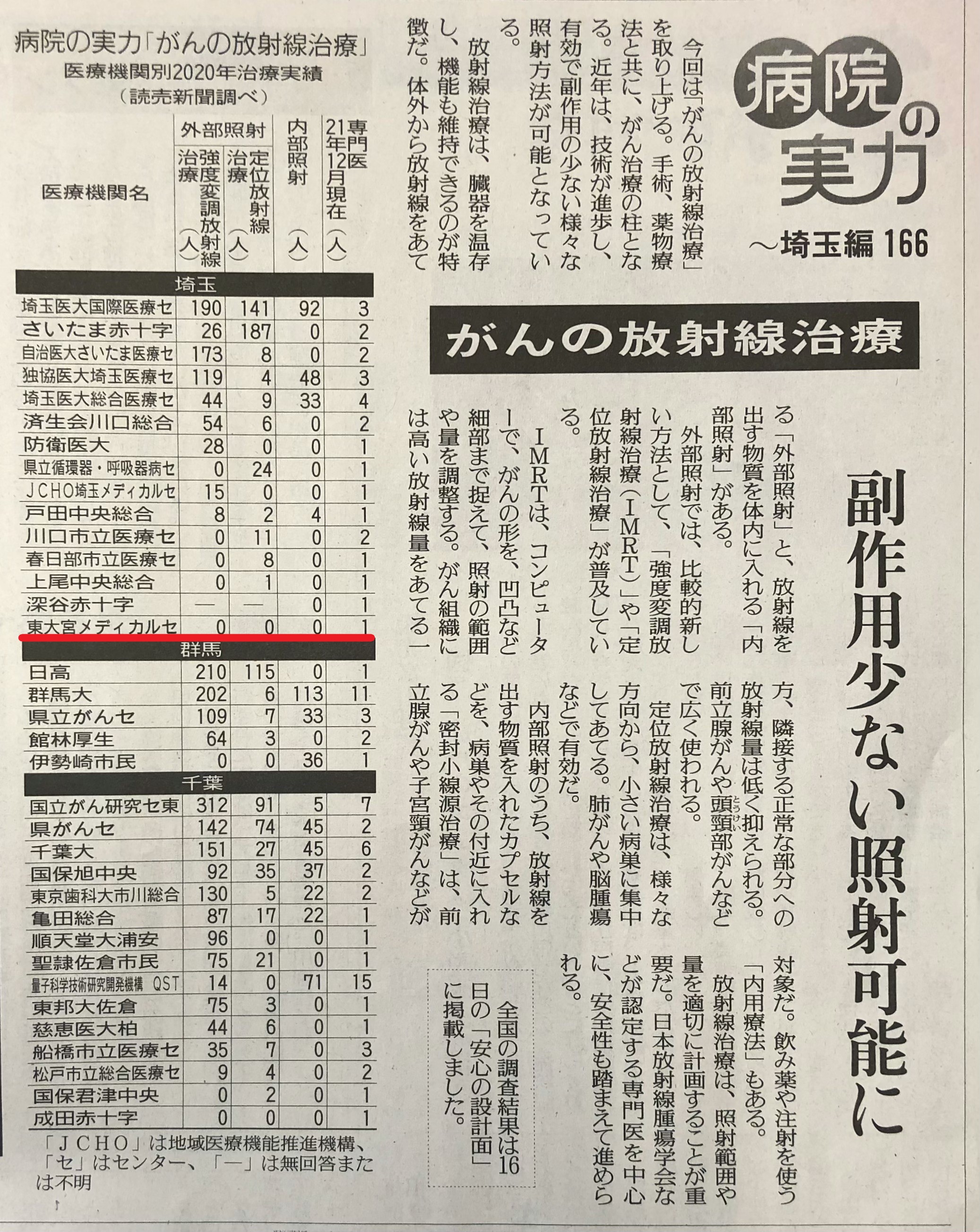 当院が読売新聞「病院の実力」の【がんの放射線治療】の記事に掲載されました。