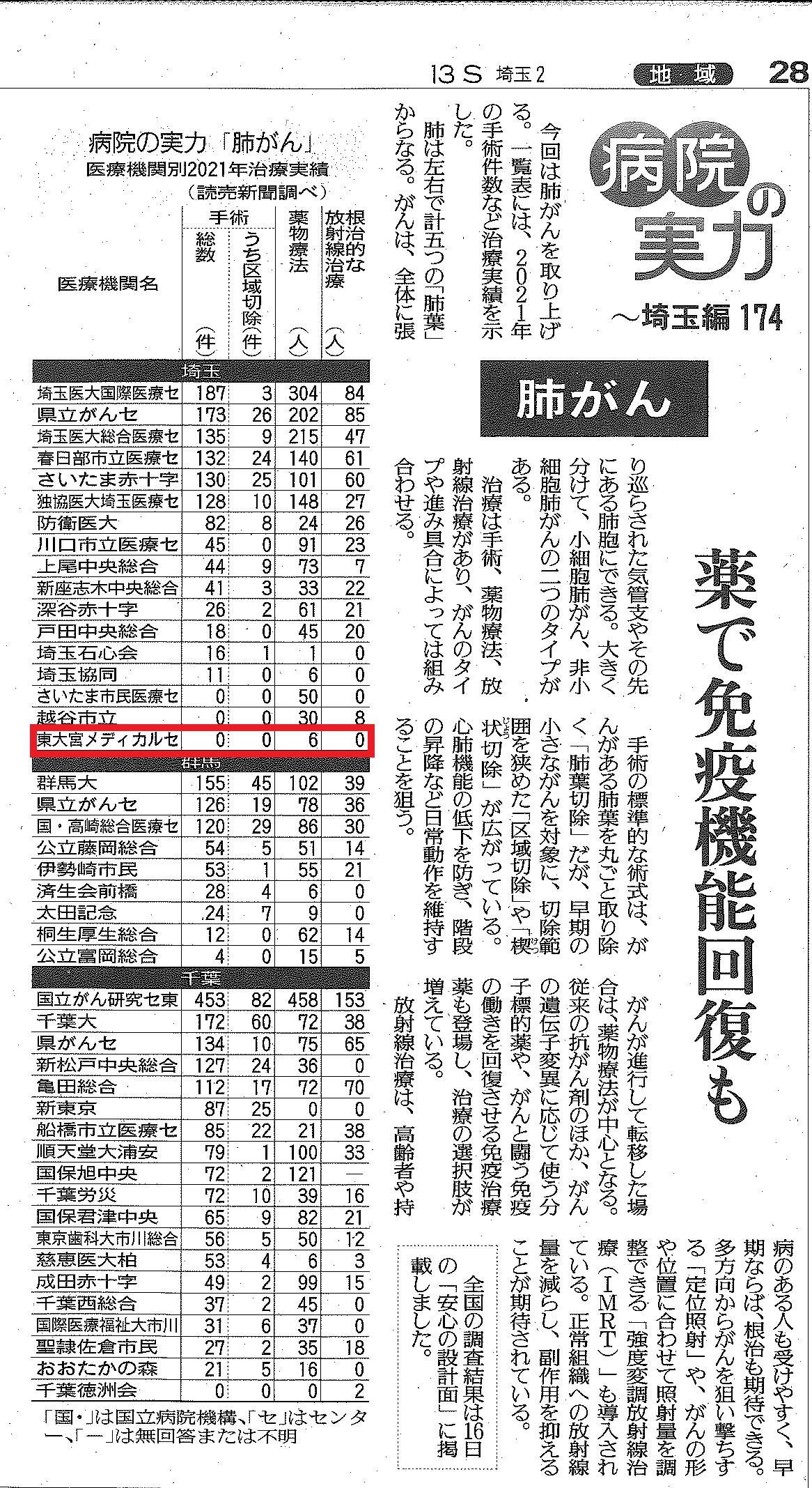 当院が読売新聞「病院の実力」の【肺がん】の記事に掲載されました。