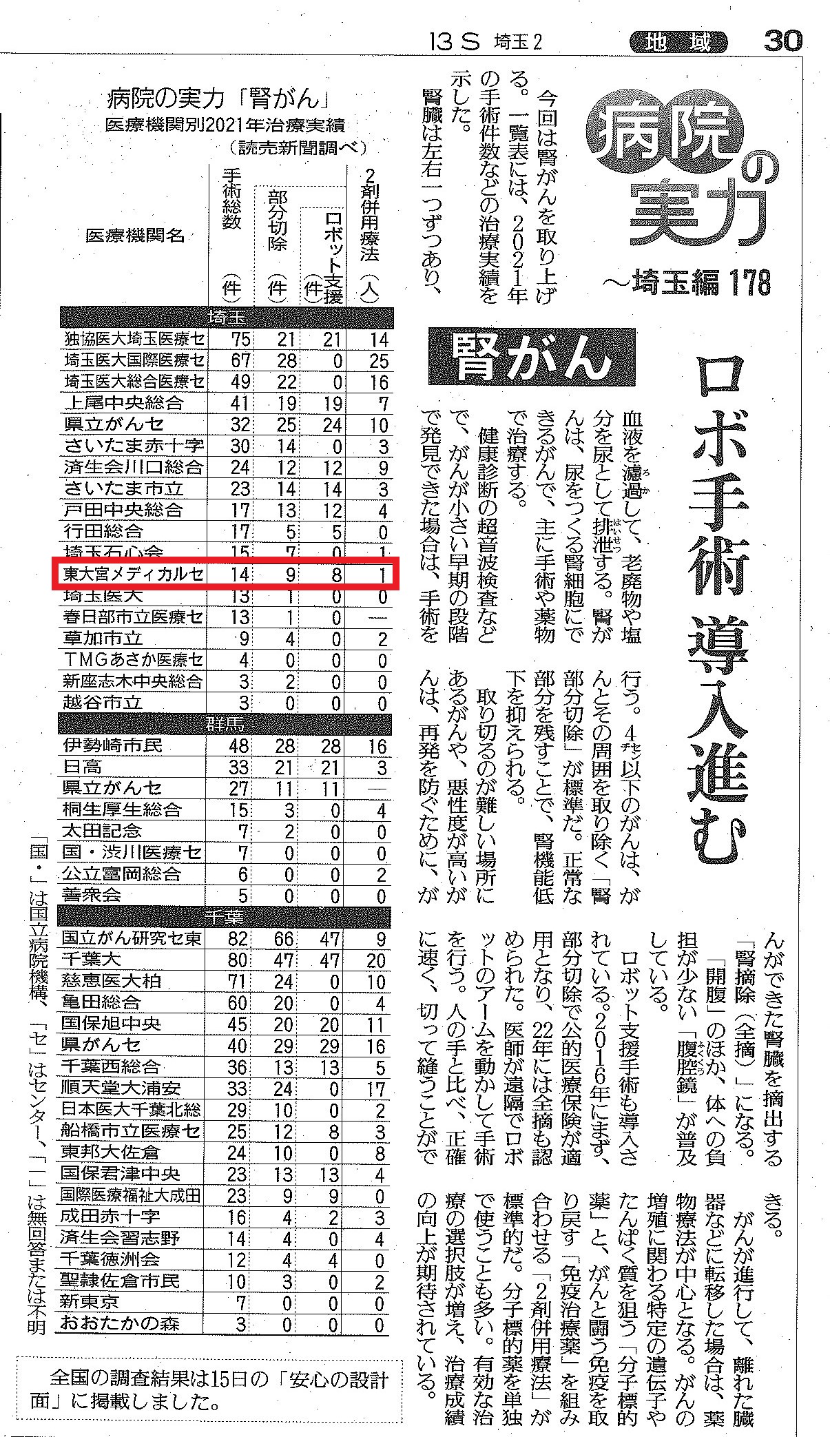 当院が読売新聞「病院の実力」の【腎がん】の記事に掲載されました。