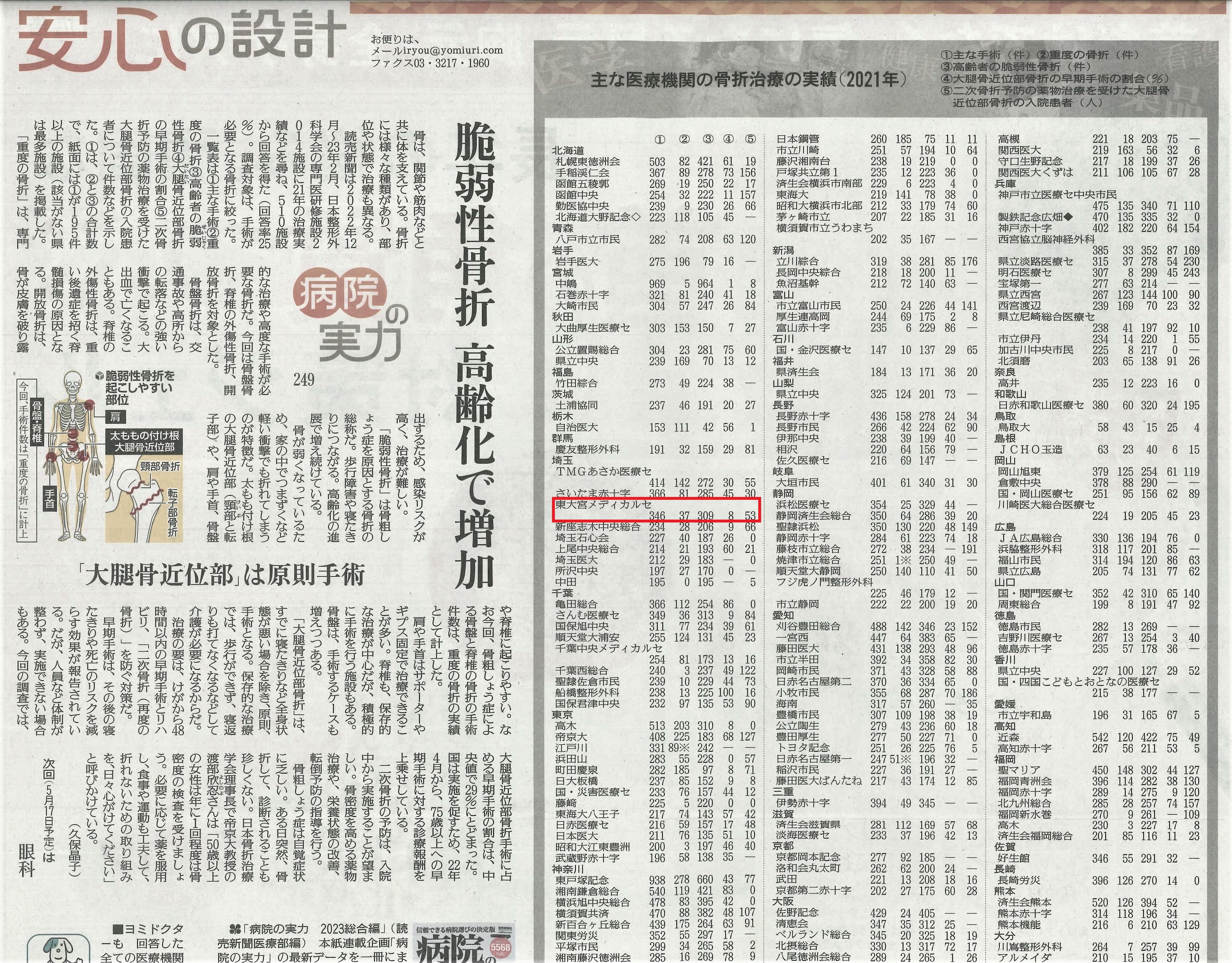 当院が読売新聞「病院の実力」の【骨折治療】の記事に掲載されました。