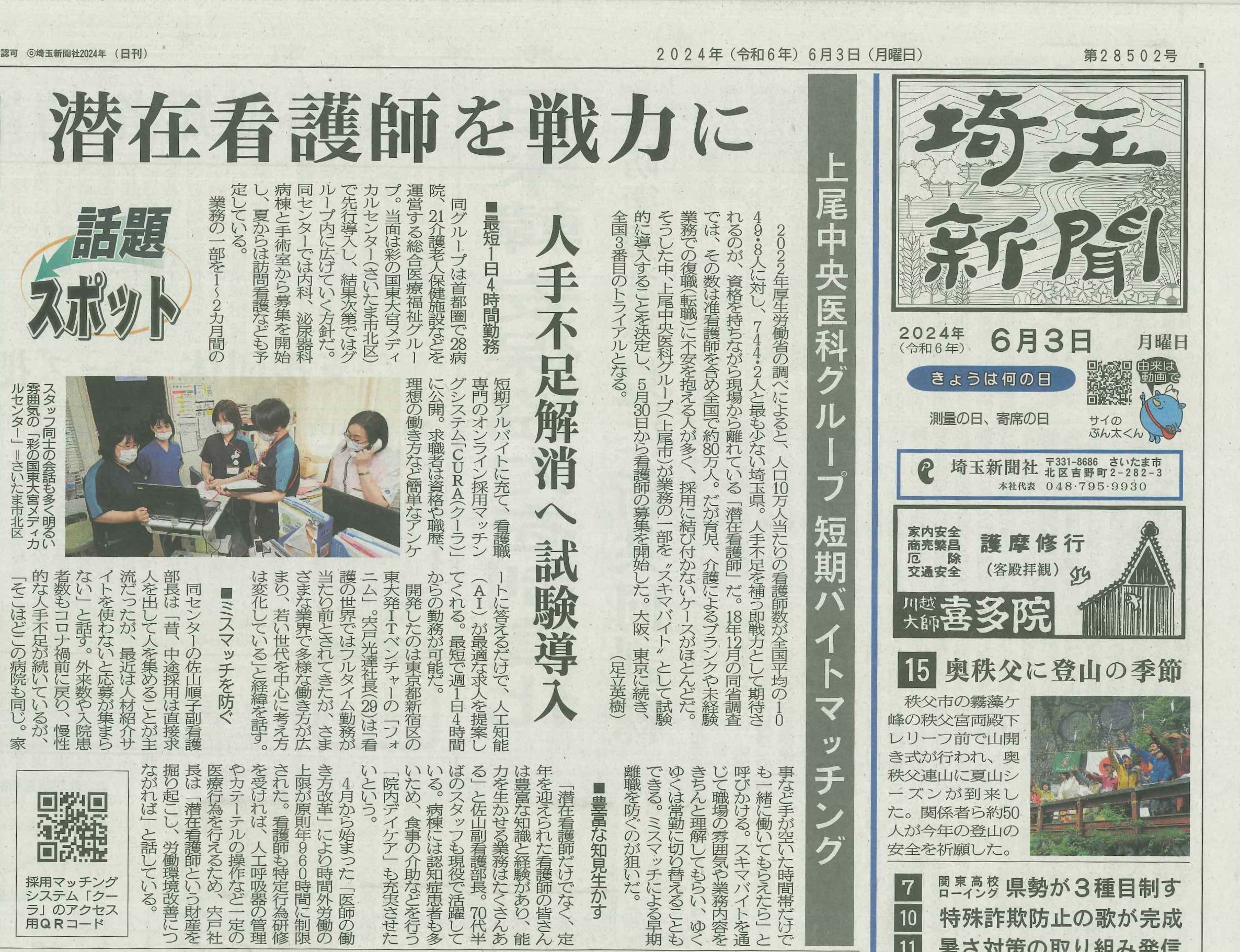 当院の看護部の取り組みが埼玉新聞に掲載されました。
