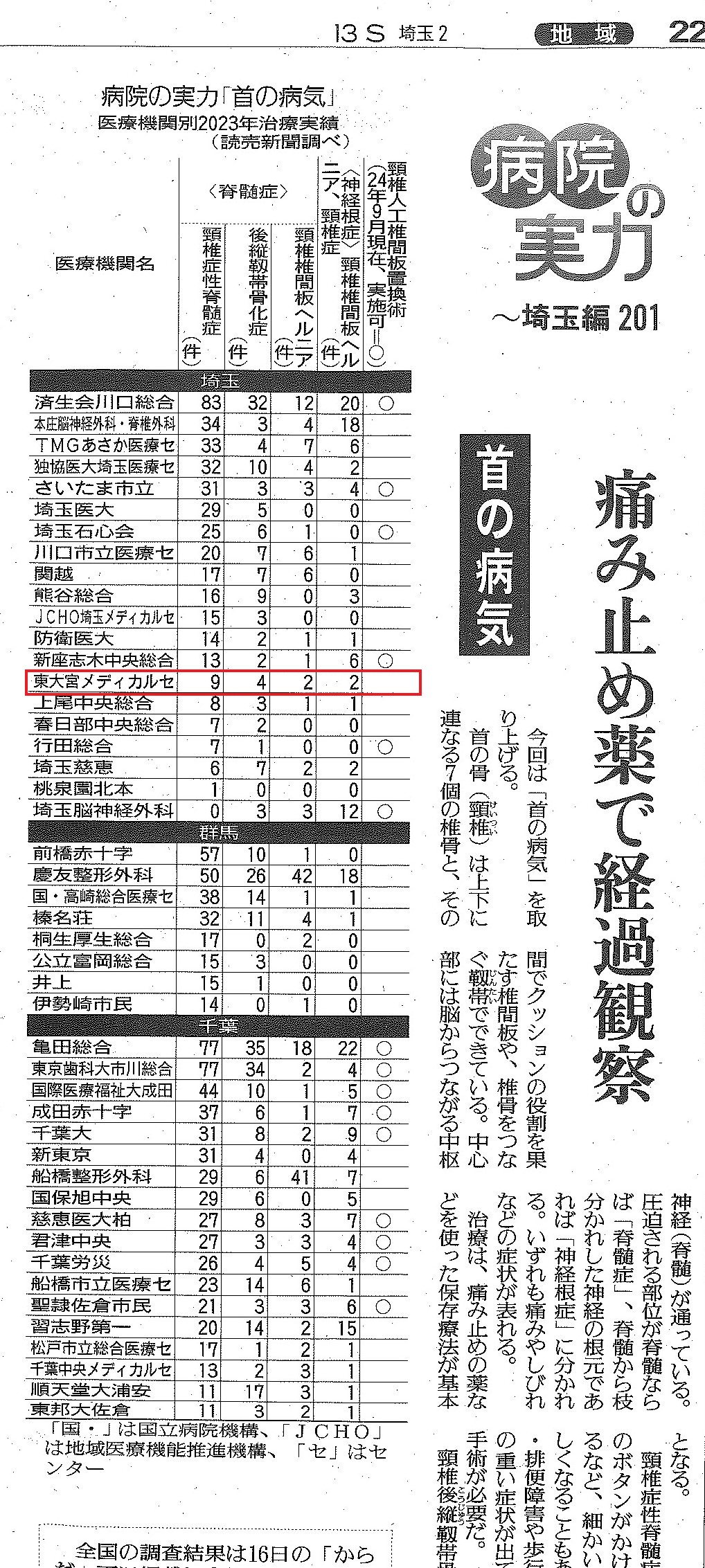 当院が読売新聞「病院の実力」の【首の病気】の記事に掲載されました。