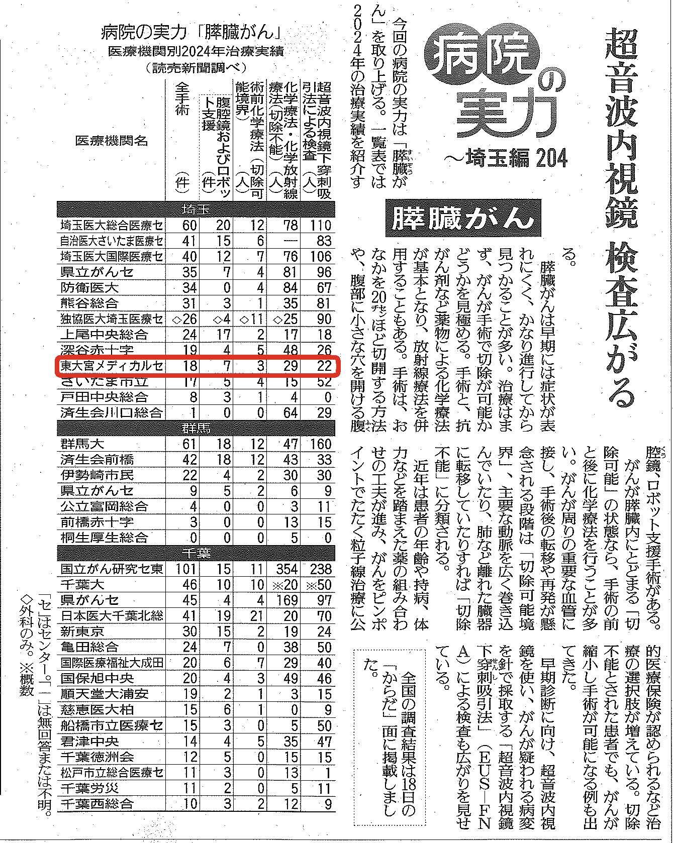 当院は、2025年5月25日に発行された読売新聞「病院の実力」の【膵臓がん】の記事に掲載されました。