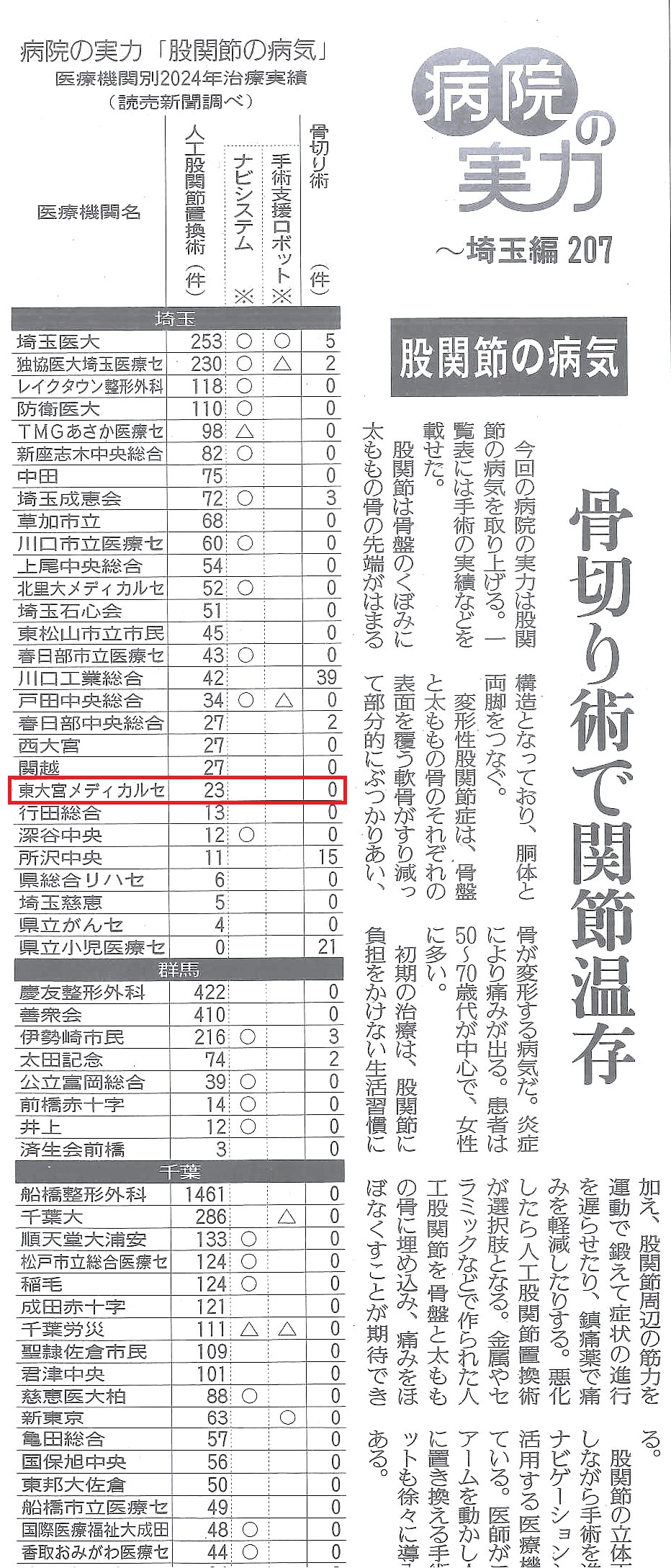 当院は、2025年8月24日に発行された読売新聞「病院の実力」の【股関節の病気】の記事に掲載されました。