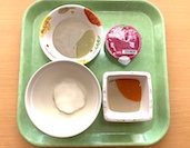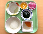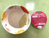| 副菜ミキサーとろみ1品+ゼリー | ミキサー粥50g 副菜ミキサーとろみ1/2量+ゼリー |